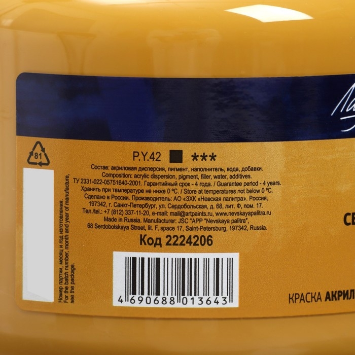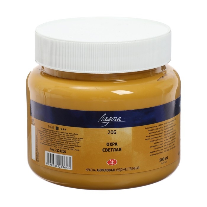 Краска акриловая художественная 500 мл, ЗХК "Ладога", охра светлая, 2224206