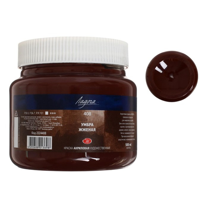 Краска акриловая художественная 500 мл, ЗХК "Ладога", умбра жжёная, 2224408