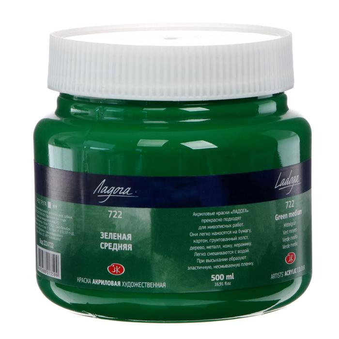 Краска акриловая художественная 500 мл, ЗХК "Ладога", зелёная средняя, 2224722