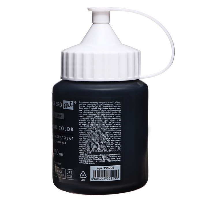 Художественная акриловая краска BRAUBERG ART CLASSIC предназначена для живописи и декоративных работ. Используется при работе почти на любой поверхности: бумаге, картоне, холсте, дереве, коже и т.д.