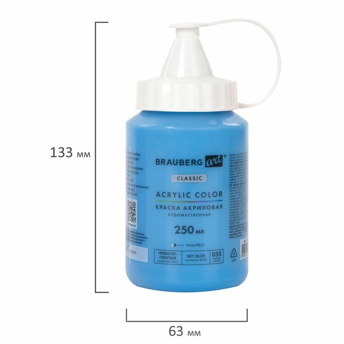 Краска акриловая художественная туба 250 мл, BRAUBERG ART CLASSIC, Небесно-голубая
