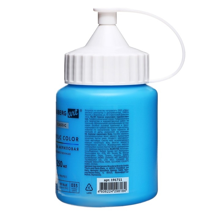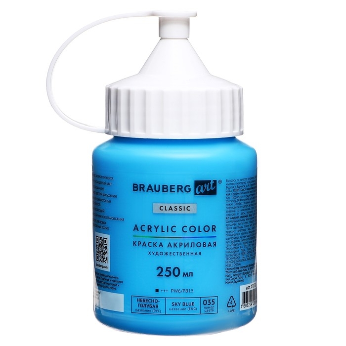 Художественная акриловая краска BRAUBERG ART CLASSIC предназначена для живописи и декоративных работ. Используется при работе почти на любой поверхности: бумаге, картоне, холсте, дереве, коже и т.д.