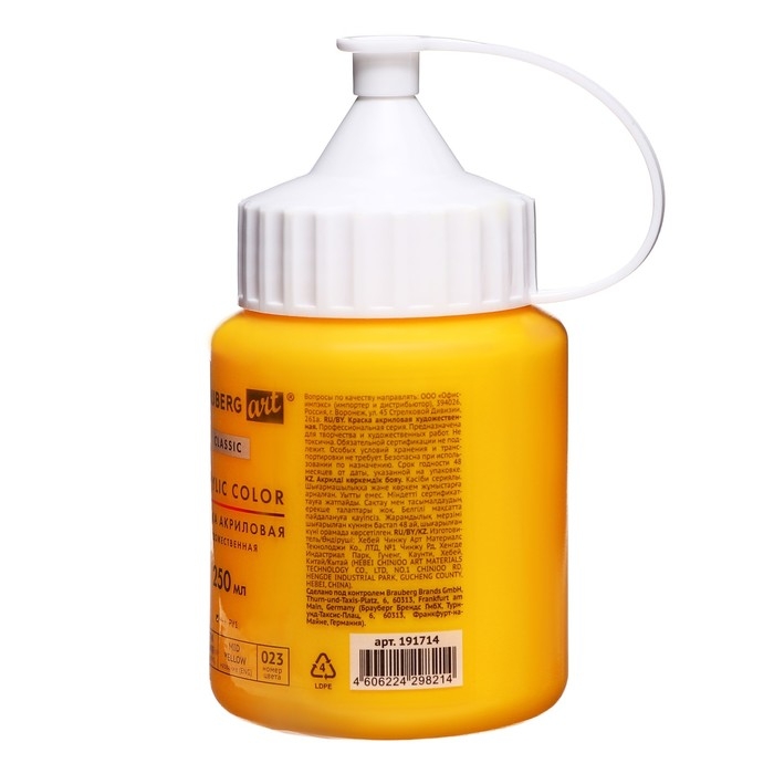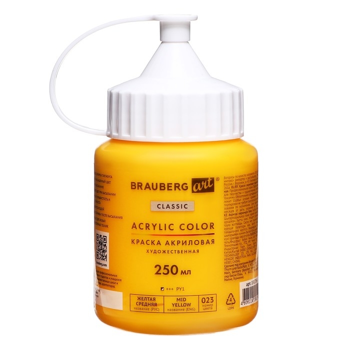 Художественная акриловая краска BRAUBERG ART CLASSIC предназначена для живописи и декоративных работ. Используется при работе почти на любой поверхности: бумаге, картоне, холсте, дереве, коже и т.д.