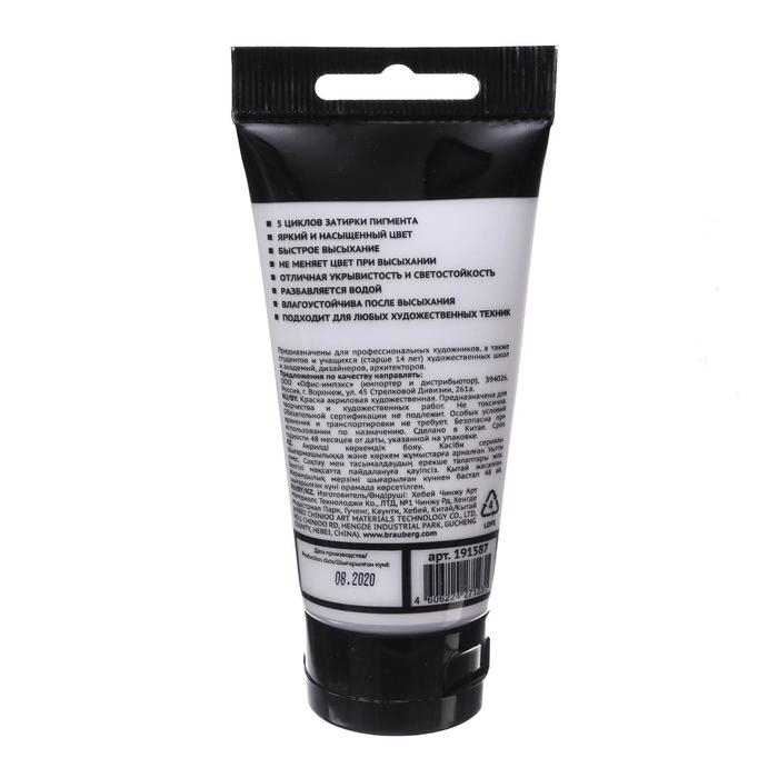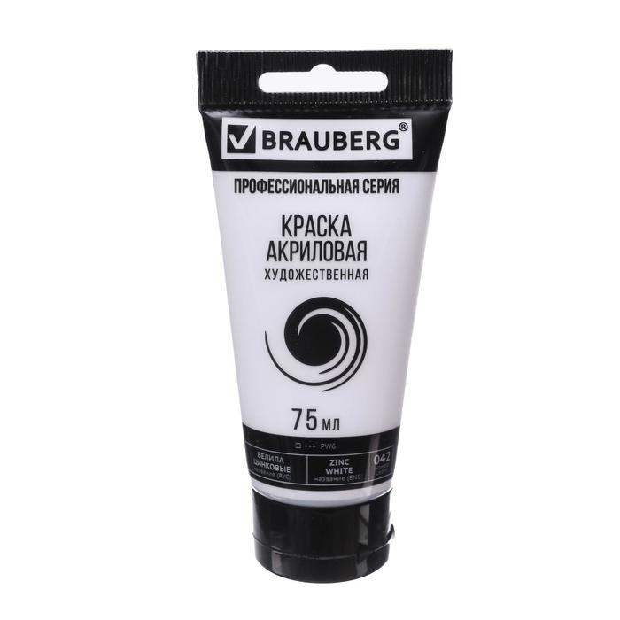 Краска акриловая художественная туба 75 мл, BRAUBERG белила цинковые