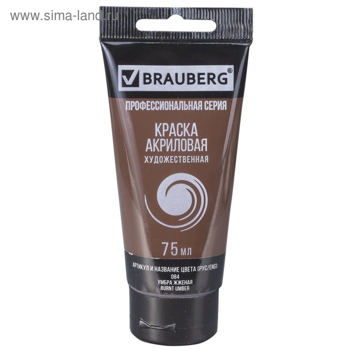 Краска акриловая художественная туба 75 мл, BRAUBERG "Умбра жжёная"