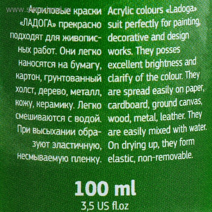 Краска акриловая художественная в банке 100 мл, ЗХК "Ладога", окись хрома, 2227704
