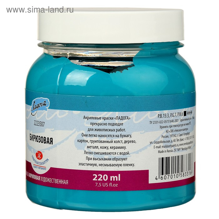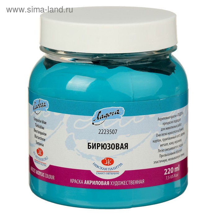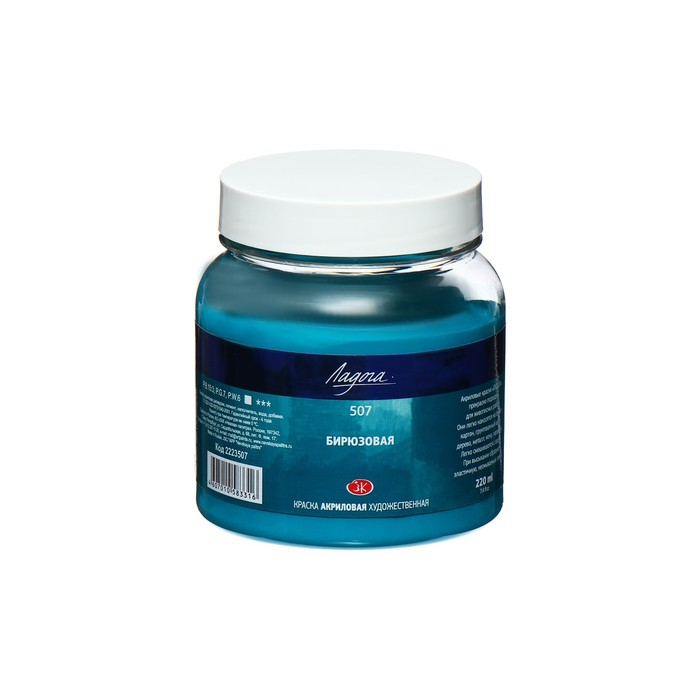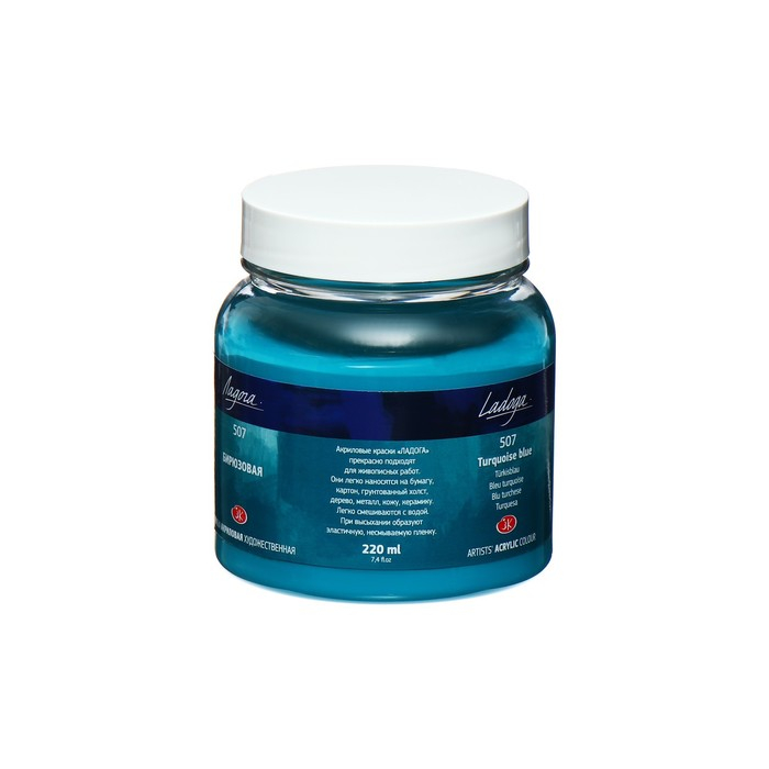 Краска акриловая художественная в банке 220 мл, ЗХК "Ладога", бирюзовая, 2223507