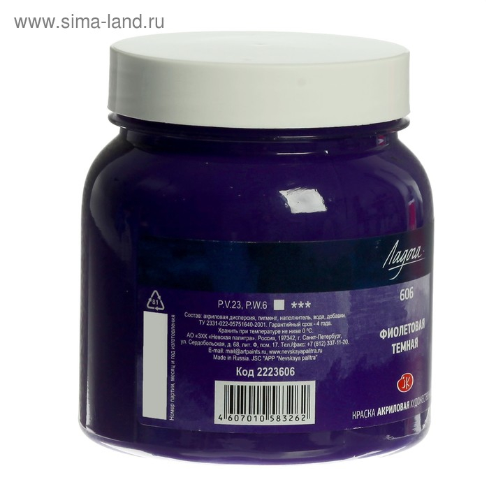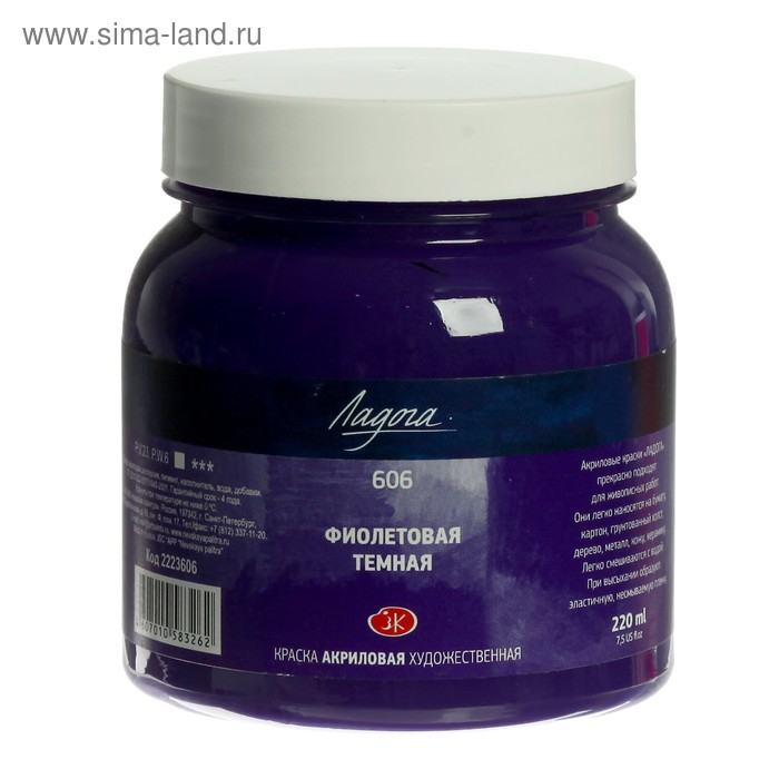 Краска акриловая художественная в банке 220 мл, ЗХК "Ладога", фиолетовая тёмная, 2223606