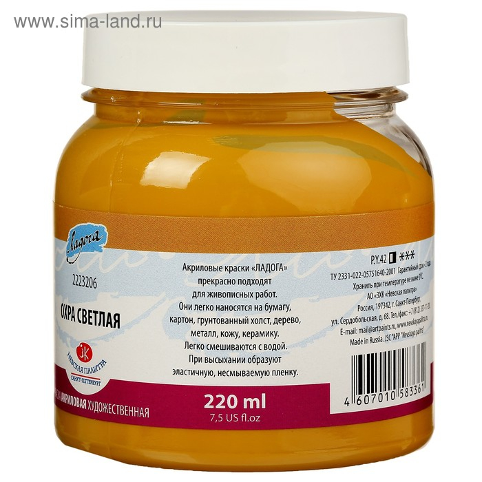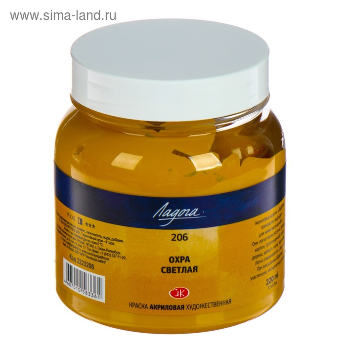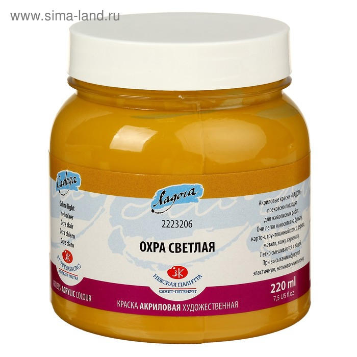 Краска акриловая художественная в банке 220 мл, ЗХК "Ладога", охра светлая, 2223206
