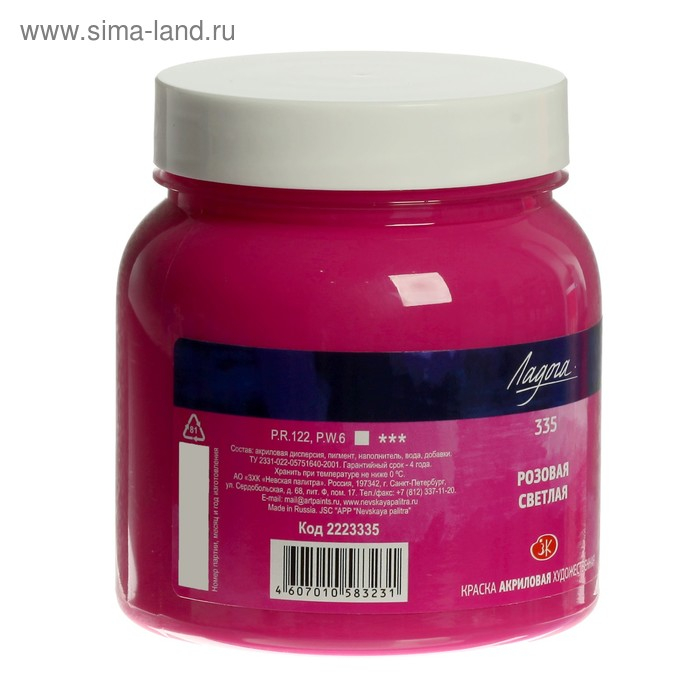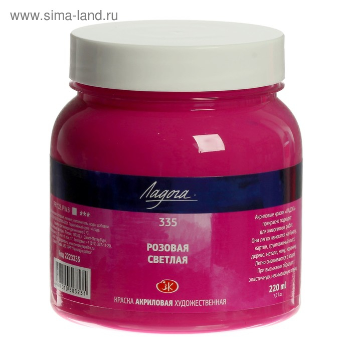 Краска акриловая художественная в банке 220 мл, ЗХК "Ладога", розовая светлая, 2223335