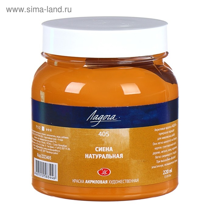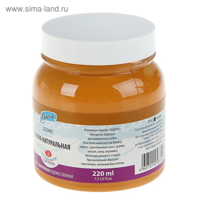 Краска акриловая художественная в банке 220 мл, ЗХК "Ладога", сиена натуральная, 2223405