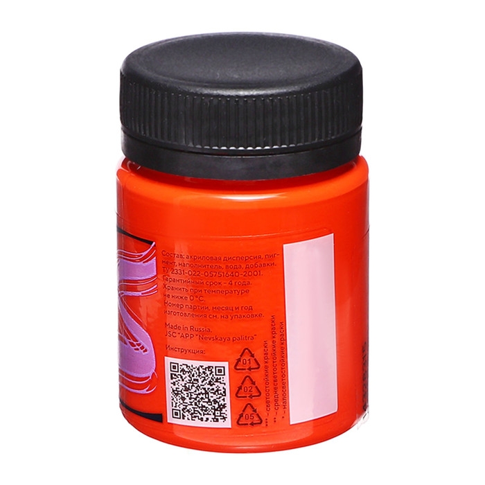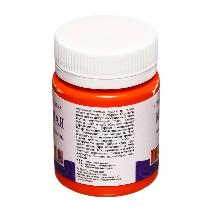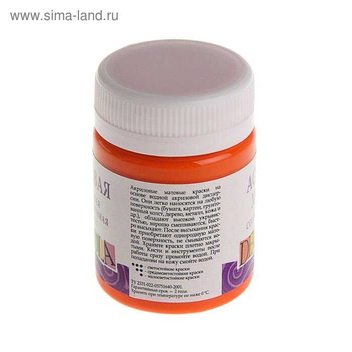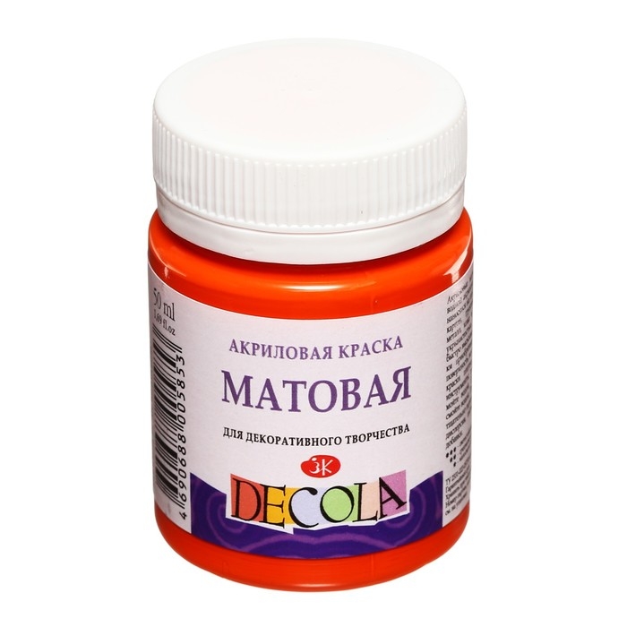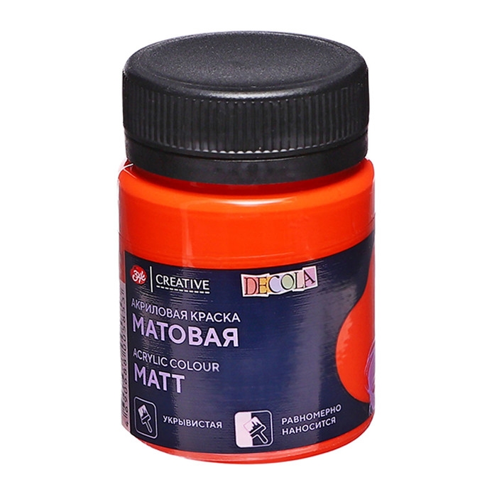 Краска акриловая матовая 50 мл, ЗХК Decola, оранжевая, 14328315