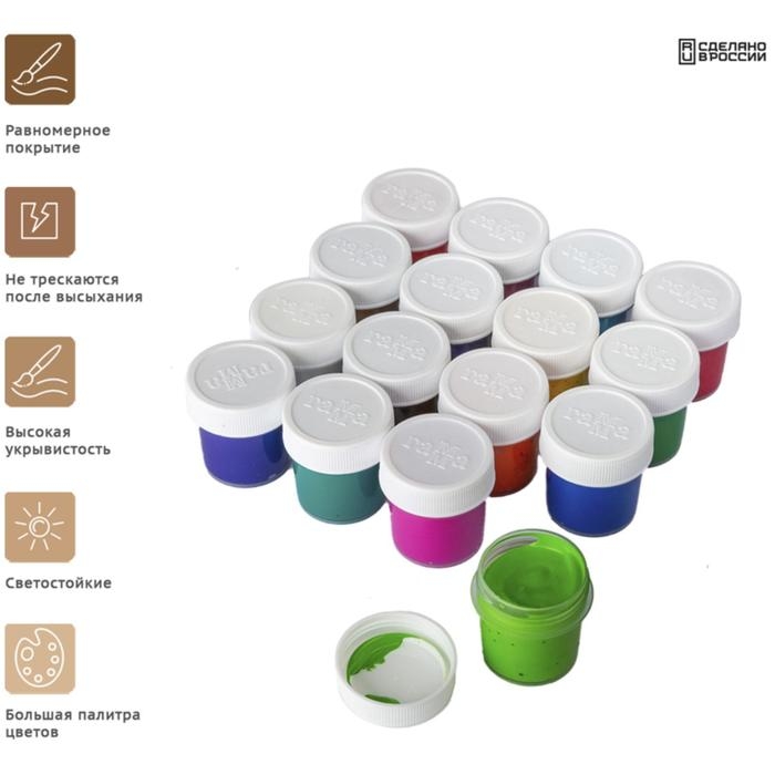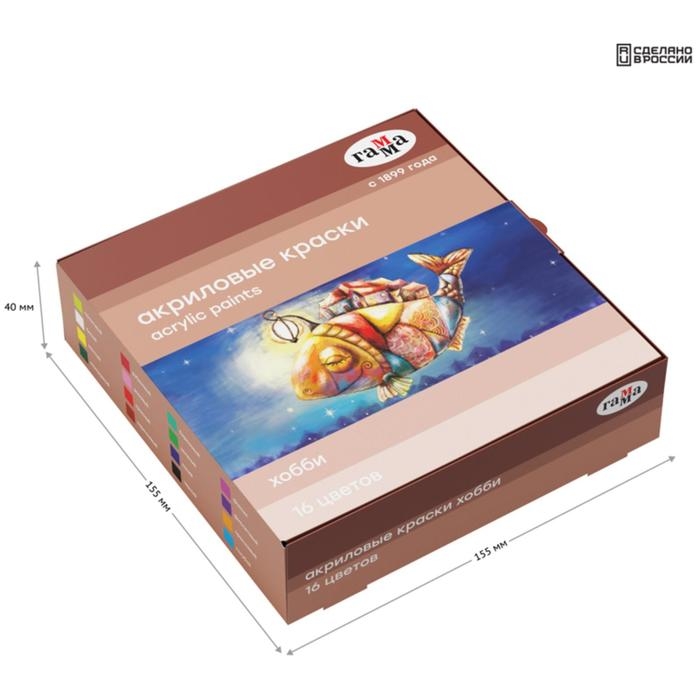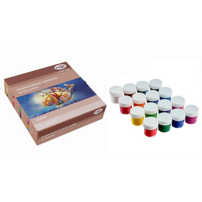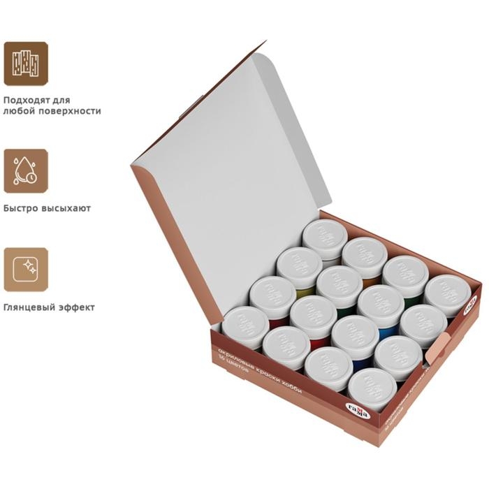 Краска акриловая, набор 16 цветов х 20 мл, Гамма "Хобби", морозостойкая, глянцевая, 1401201