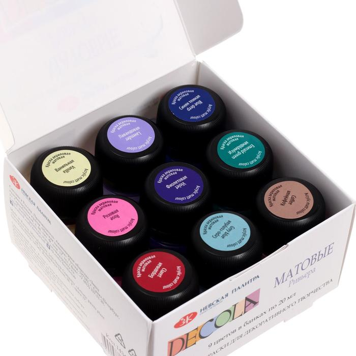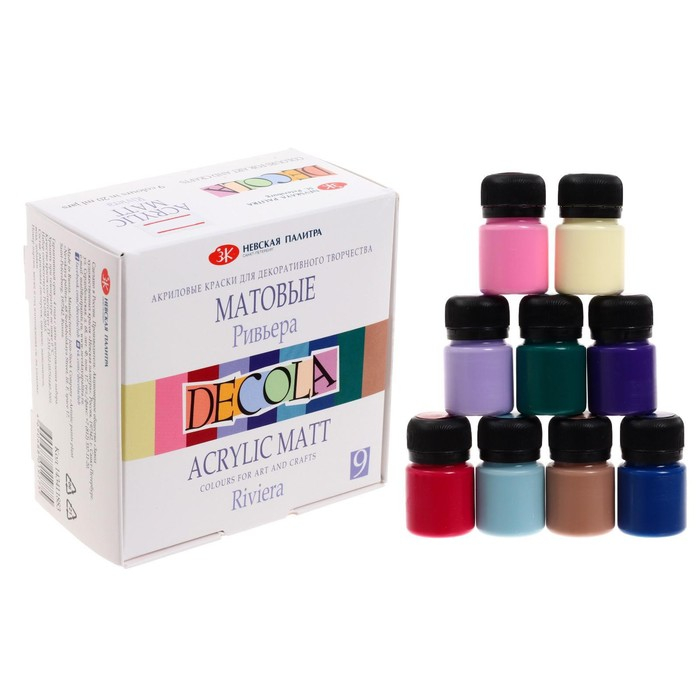 Краска акриловая, набор 9 цветов х 20 мл, Matt, ЗХК Decola "Ривьера", матовая, 143411883