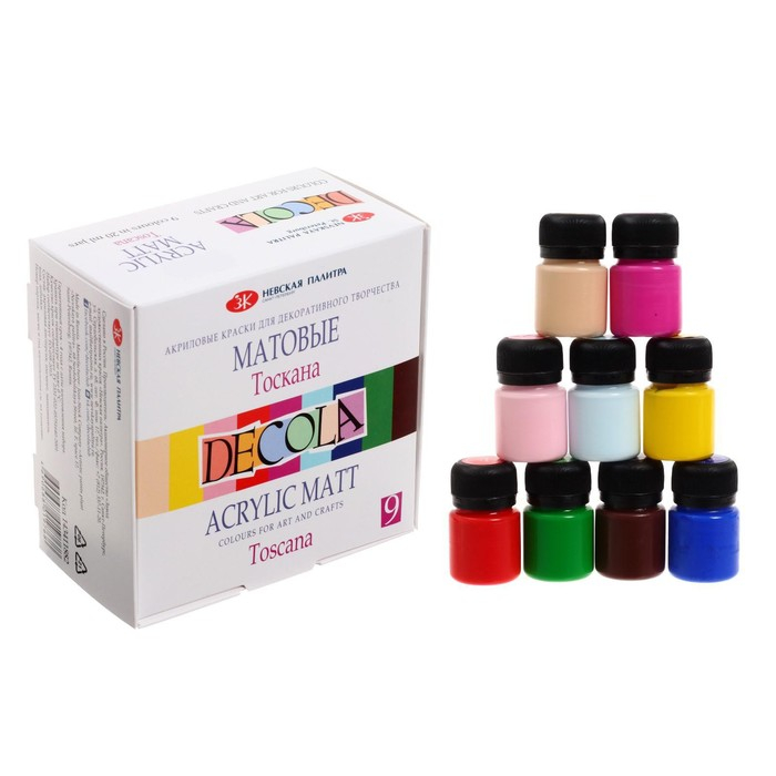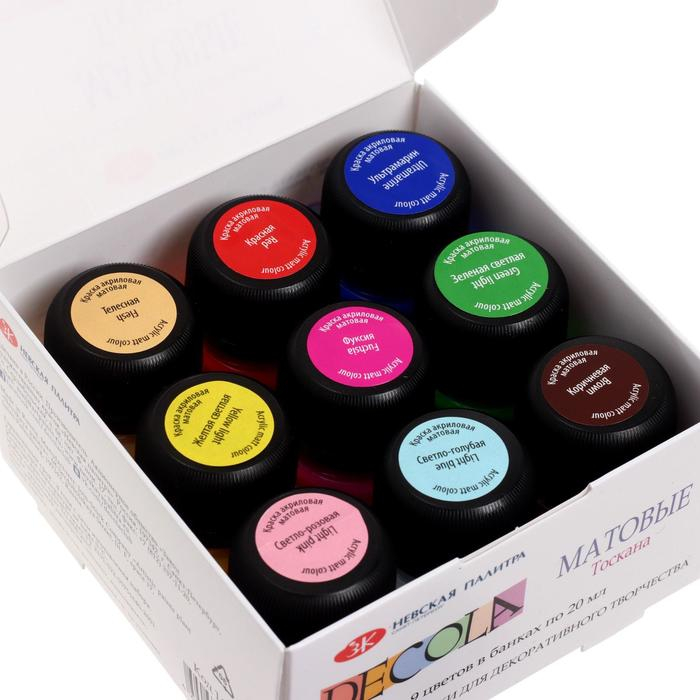 Краска акриловая, набор 9 цветов х 20 мл, Matt, ЗХК Decola "Тоскана", матовая, 143411882