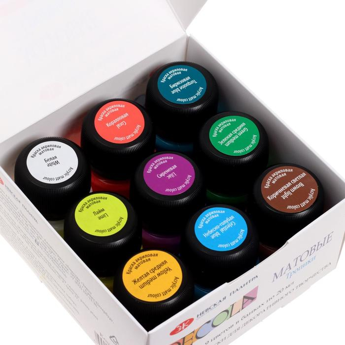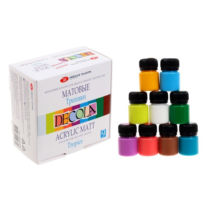 Краска акриловая, набор 9 цветов х 20 мл, Matt, ЗХК Decola "Тропики", матовая, 143411884