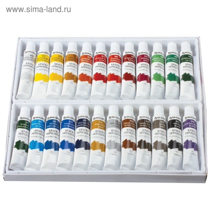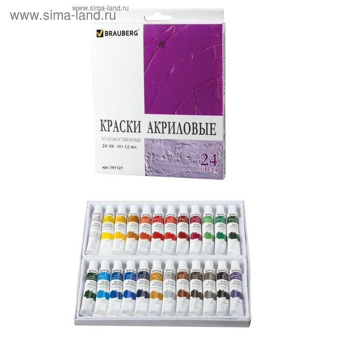 Краска акриловая в тубе, набор 24 цвета х 12 мл, BRAUBERG ART DEBUT, 191127