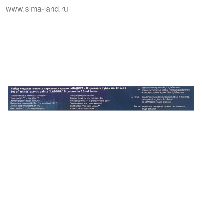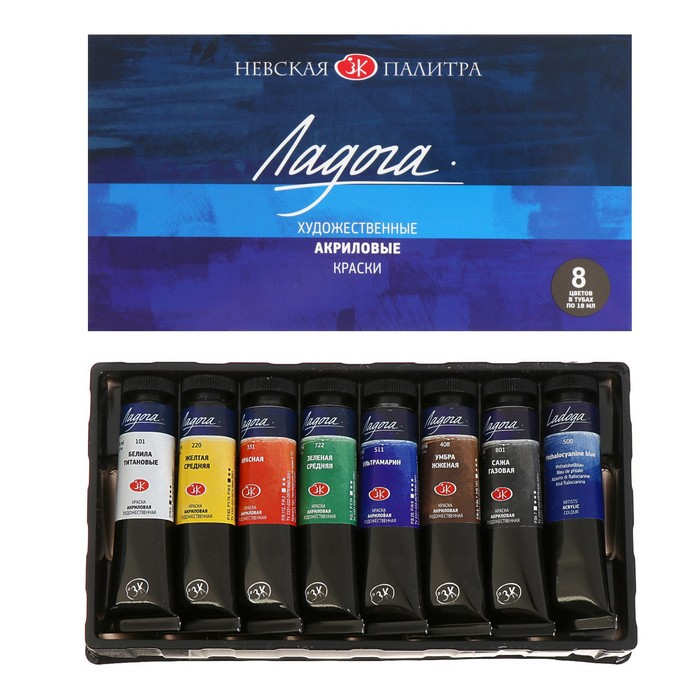 Краска акриловая в тубе, набор 8 цветов х 18 мл, ЗХК "Ладога", художественный, 2241178