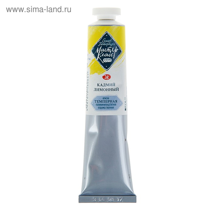 Краска художественная темперная в тубе 46 мл, ЗХК "Мастер-класс", кадмий лимонный, 1604203