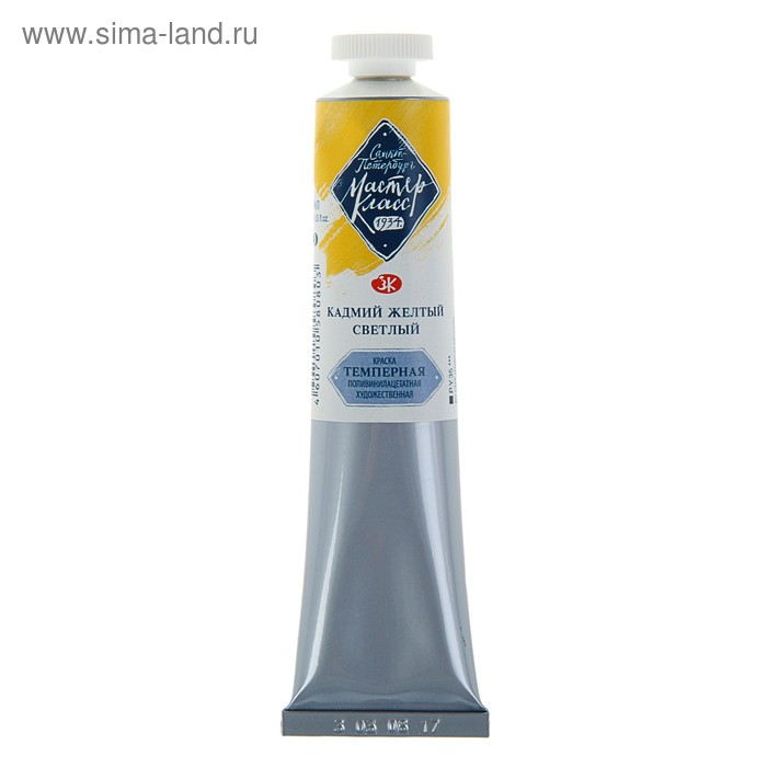 Краска художественная темперная в тубе 46 мл, ЗХК "Мастер-класс", кадмий жёлтый светлый, 1604200