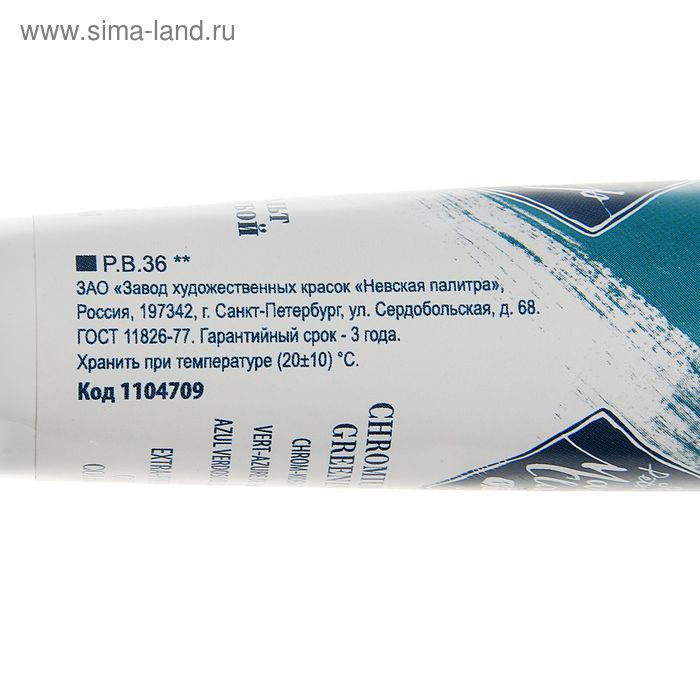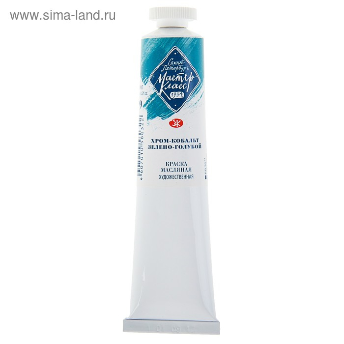 Краска масляная в тубе 46 мл, ЗХК "Мастер-класс", хром-кобальт зелёно-голубой, 1104709