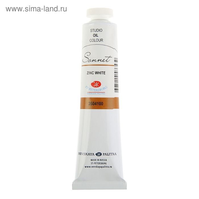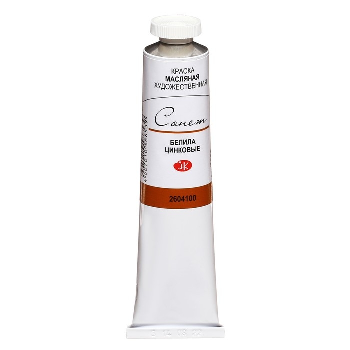 Краска масляная в тубе 46 мл, ЗХК "Сонет", белила цинковые, 2604100