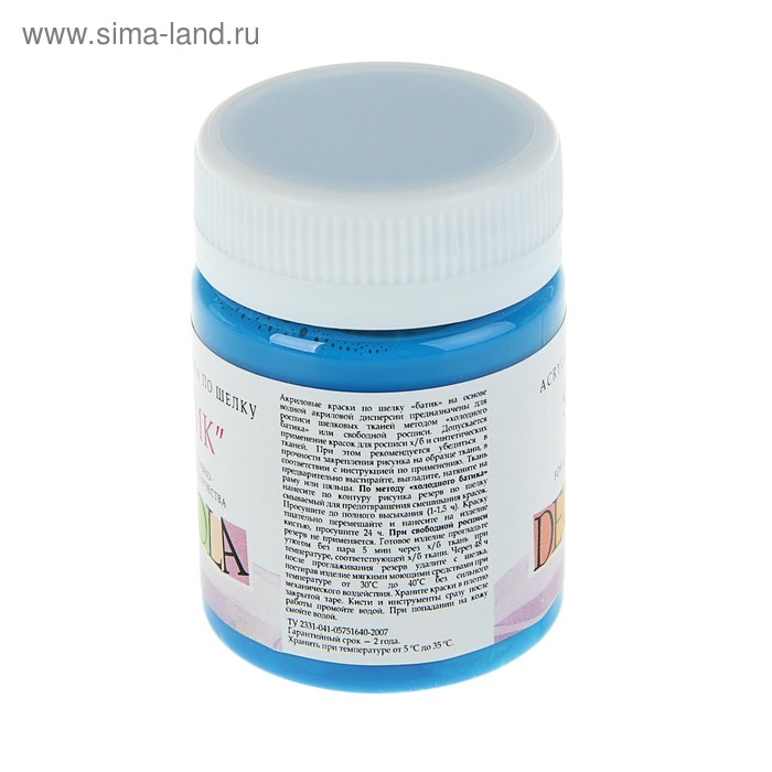 Краска по шелку "Батик", банка 50 мл, ЗХК Decola, Небесно-голубая 4428512 (акриловая на водной основе)