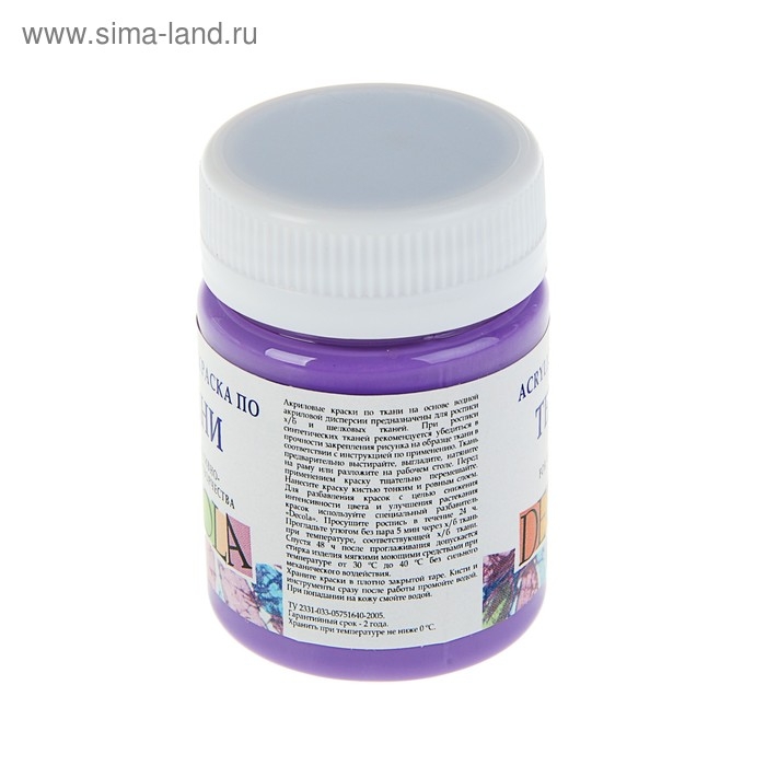 Краска по ткани, банка 50 мл, ЗХК Decola, Фиолетовая светлая 4128605, (акриловая на водной основе)