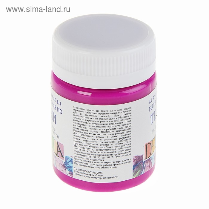Краска по ткани, банка 50 мл, ЗХК Decola, Fluo флуоресцентная Фиолетовая, акриловая на водной основе, 5128607