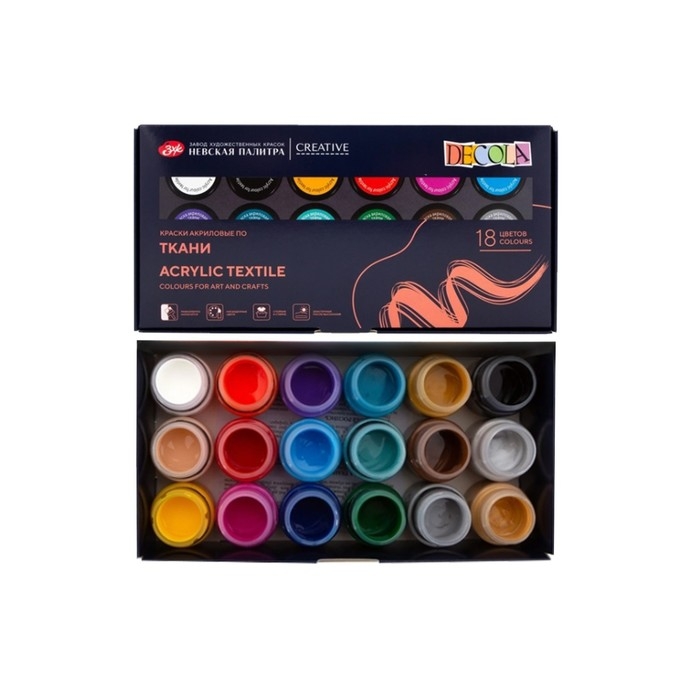 Краска по ткани, набор 18 цветов х 20 мл, ЗХК Decola, , акриловая на водной основе, 41412031