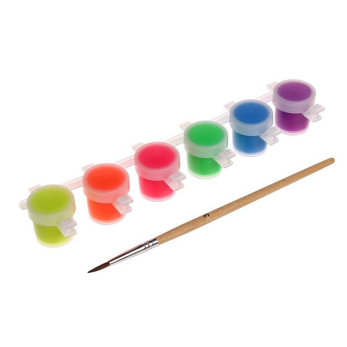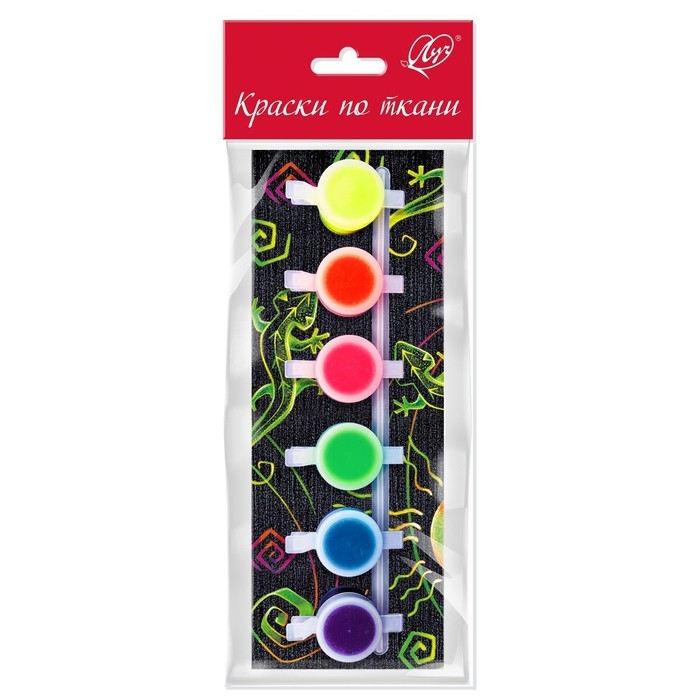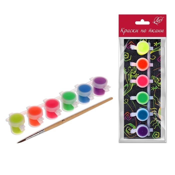 Краска по ткани, набор 6 цветов х 5 мл, Луч, флуоресцентная, акриловая на водной основе, с кистью