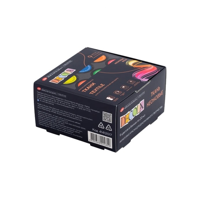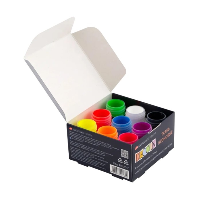 Краска по ткани, набор 9 цветов х 20 мл, ЗХК Decola, Neon, неоновые цвета, акриловая на водной основе, (41412017)