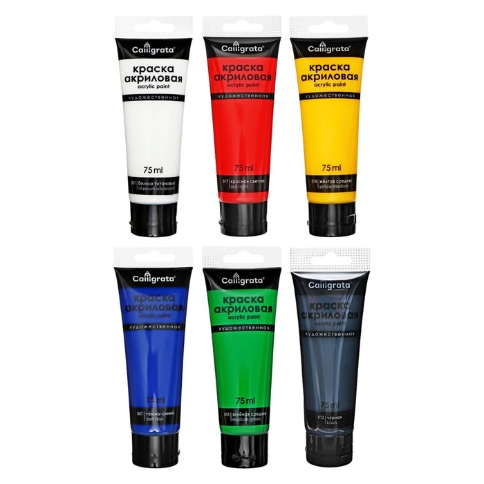 Краски акриловые 6 цветов, в тубе 75 мл, матовые, CALLIGRATA, Классика