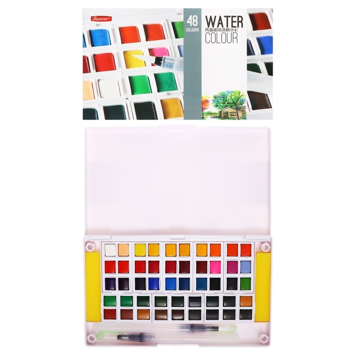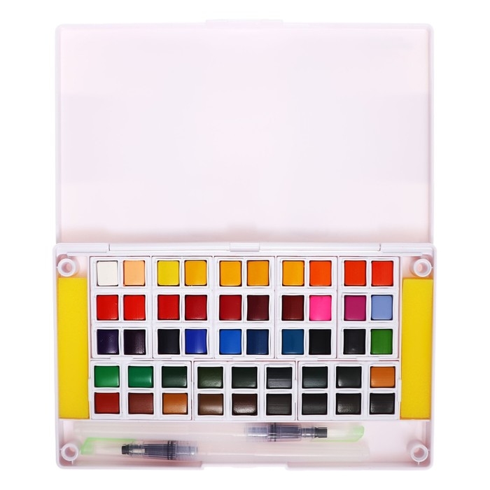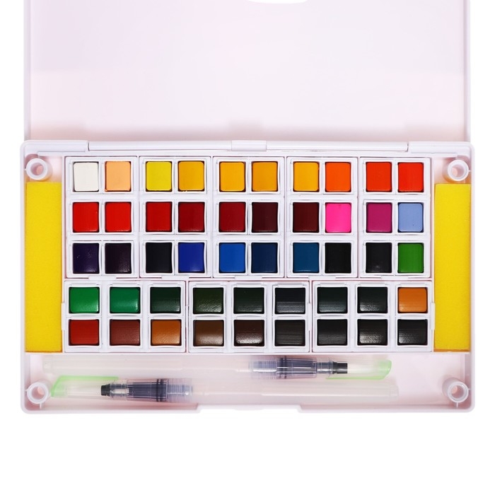 Краски акварельные, + 2 штуки кисти, в пластиковой коробке, 48 цветов