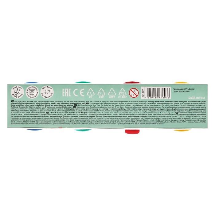 Краски пальчиковые, 4 цвета х 35мл ErichKrause "Baby", с Алоэ Вера, картон