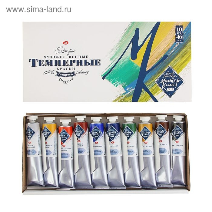 Краски темперные, набор 10 цветов х 46 мл, ЗХК "Мастер-класс", 1641032