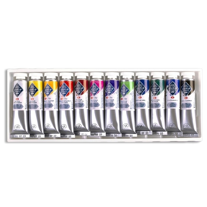 Краски темперные, набор 12 цветов х 18 мл, ЗХК "Мастер Класс" Колористика. Яркая палитра, 16412282