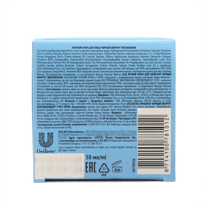 Крем для лица «Чёрный жемчуг. Увлажнение», ночной, 50 мл