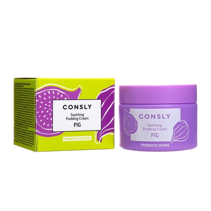 Успокаивающий крем с экстрактом инжира Probiotic Biome Soothing Fig Pudding Cream южнокорейской компании Consly предназначен для ухода за сухой и чувствительной кожей лица, шеи и области декольте.
