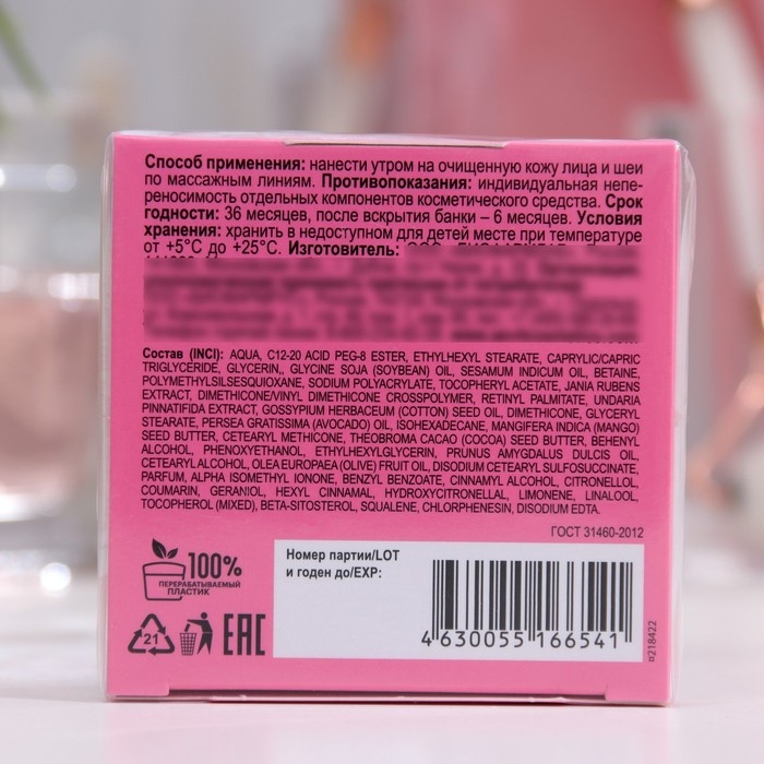 Способ применения: нанести утром на очищенную кожу лица и шеи по массажным линиям.