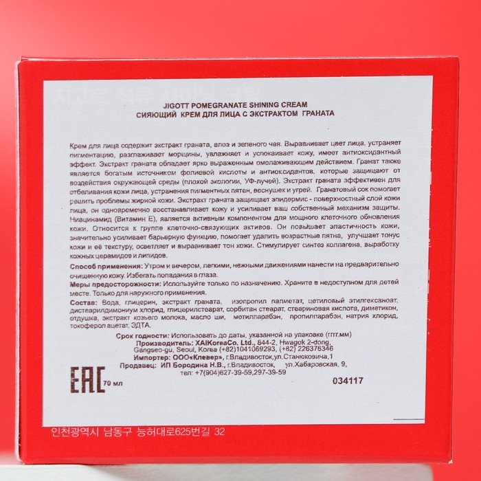 Крем для лица с гранатом jigott, 70 мл