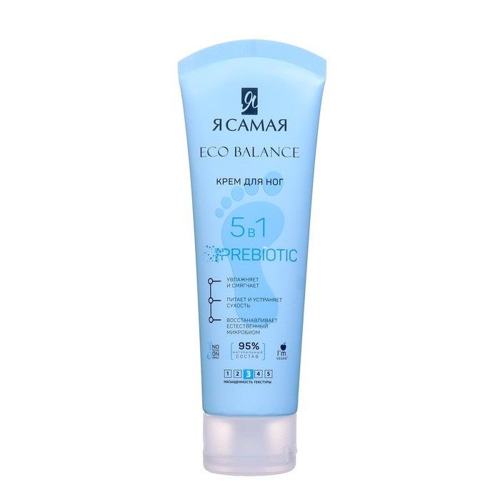 Крем для ног "Я самая" Eco Balance 5 в 1 делает кожу стоп мягкой, увлажненной и качественно напитанной. Кожа получает защитные функции, чтобы бороться с вредоносным воздействием окружающей среды. При регулярном использовании средства стопы становятся максимально увлажненными - на них больше не будут возникать мозоли, натоптыши и болезненные трещины.