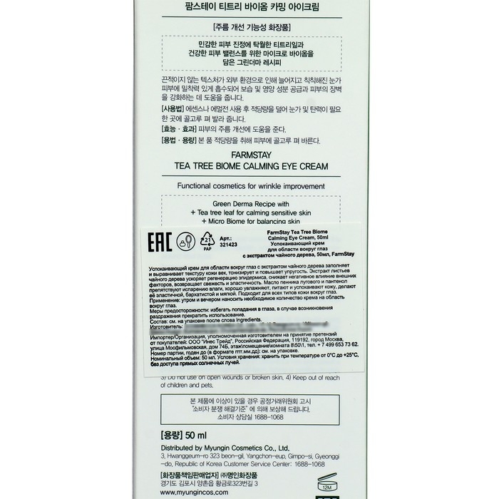 Крем для области вокруг глаз FarmStay с экстрактом чайного дерева, 50 мл