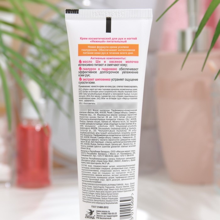 Крем косметический для рук и ногтей питательный. Новая формула крема усилена гиалуроном. Обеспечивает интенсивное питание кожи рук в течении всего дня. Активные компоненты:
