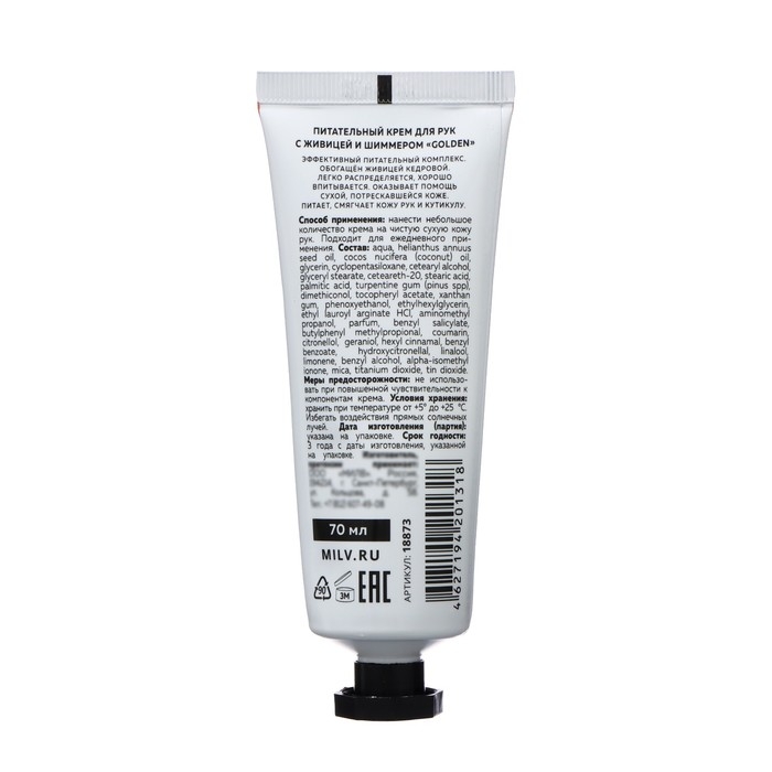 Крем для рук питательный с живицей и шиммером MILV спелая лесная земляника, 70 мл