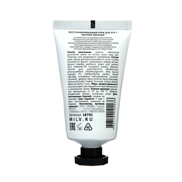 Крем для рук с маслом авокадо восстанавливающий MILV вишня, 40 мл - это продукт, который создан для эффективного ухода за сухой, шелушащейся и чувствительной кожей в период межсезонья, особенно при изменениях температуры и сухости воздуха. Вот ключевые компоненты и свойства этого крема: