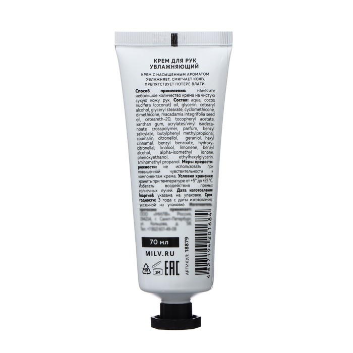 Крем для рук увлажняющий MILV роза, бергамот, пачули, 70 мл