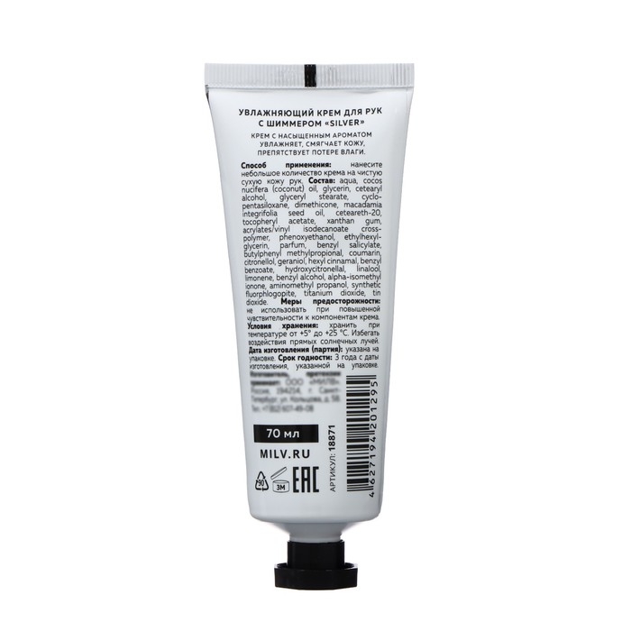 Крем для рук увлажняющий "Роскошь" с серебряным шиммером