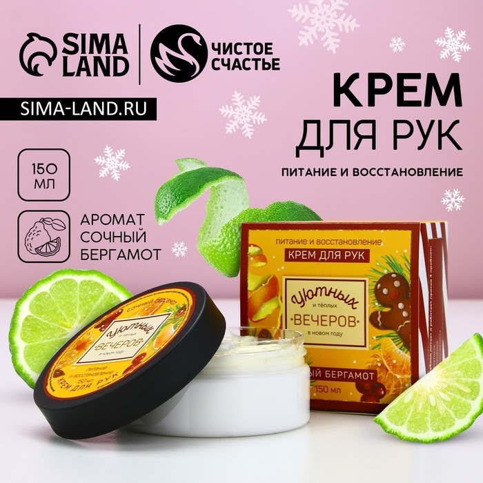 Крем для рук «Уютных вечеров», 150 мл, аромат бергамота, Новый Год