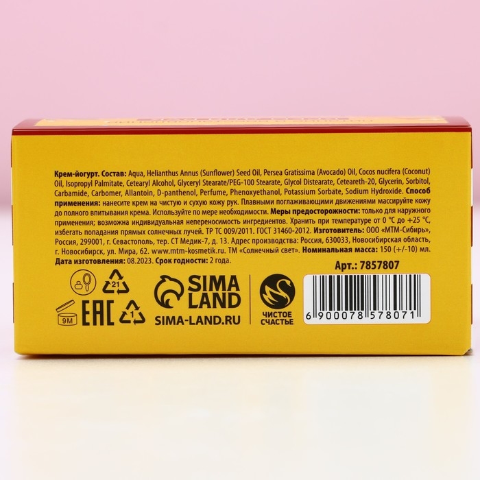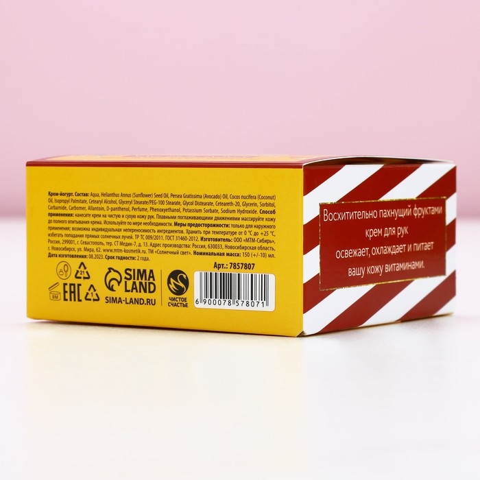 Состав: AQUA, VITIS VINIFERA(GRAPE) SEED OIL, SHEA BUTTER, SWEET ALMOND OIL, GLYCERIN, STEARIC ACID, CETEARETH-20, CETEARYL ALCOHOL, CARBOMER, PANTHENOL, AROMA, BENZYL ALCOHOL, ETHYLHEXYLGLYCERIN, TOCOPHEROL, TRIETHANOLAMINE,MANGIFERA INDICA (MANGO) EXTACT, CITRULLUS VULGARIS (WATERMELON) SEED OIL.